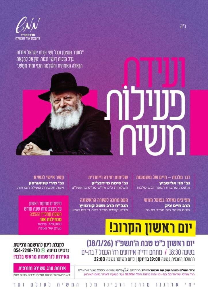 אז כן גם את הדברים הברורים האלה כל אחד יכול לסחוב לכיוון שלו, אבל אני רק מילה לסיום ברשותכם. במכתב ששלח הרבי מלך המשיח שליט"א לשלוחים לארה"ק במלאות שלוש שנים לשליחותם הוא כותב: "ובודאי עומדים כאו"א וכולם יחד הכן לקבל הברכות ולקלוט אותן, ובאופן דנרות להאיר וטופח על מנת להטפיח ופירות ופירי-פירות עד סוף העולם…". (לקו"ש חכ"ד).